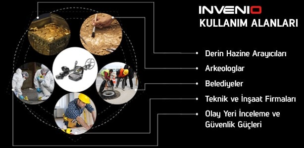 Çok Amaçlı: Invenio ile bulabileceğiniz hedefler: Derindeki büyük hazineler, tek paralar, metalden yapılmış eski eserler, zemin farklılıkları / yer altındaki mağara, tünel gibi boşluklar… kısacası toprak altında aradığınız her şey!