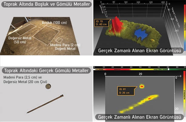 TOPRAK ALTINDAKİ METALLERİN VE ZEMİN FARKLILIKLARININ/BOŞLUKLARIN ŞEKİLLERİNİ, DERİNLİĞİNİ VE BOYUTLARINI GÖSTEREN, AYRIM YAPABİLEN, DÜNYANIN İLK GERÇEK ZAMANLI AKILLI DEDEKTÖR VE GÖRÜNTÜLEME SİSTEMİ